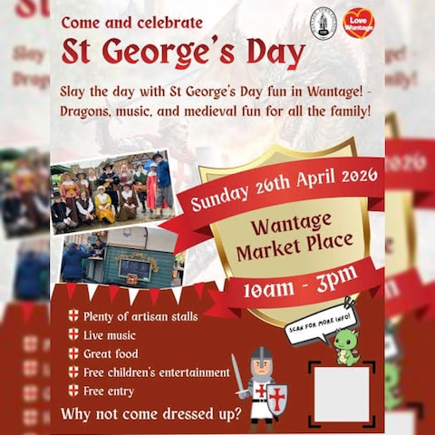 Slay the day with St George’s Day celebrations in Wantage! Join us for a fun-filled day of dragons, live music, and medieval-themed entertainment for the whole family. Browse a fantastic selection of stalls, enjoy great food, and soak up the lively atmosphere. With free children’s entertainment and free entry, it’s the perfect day out for all ages. Don’t miss this legendary celebration!