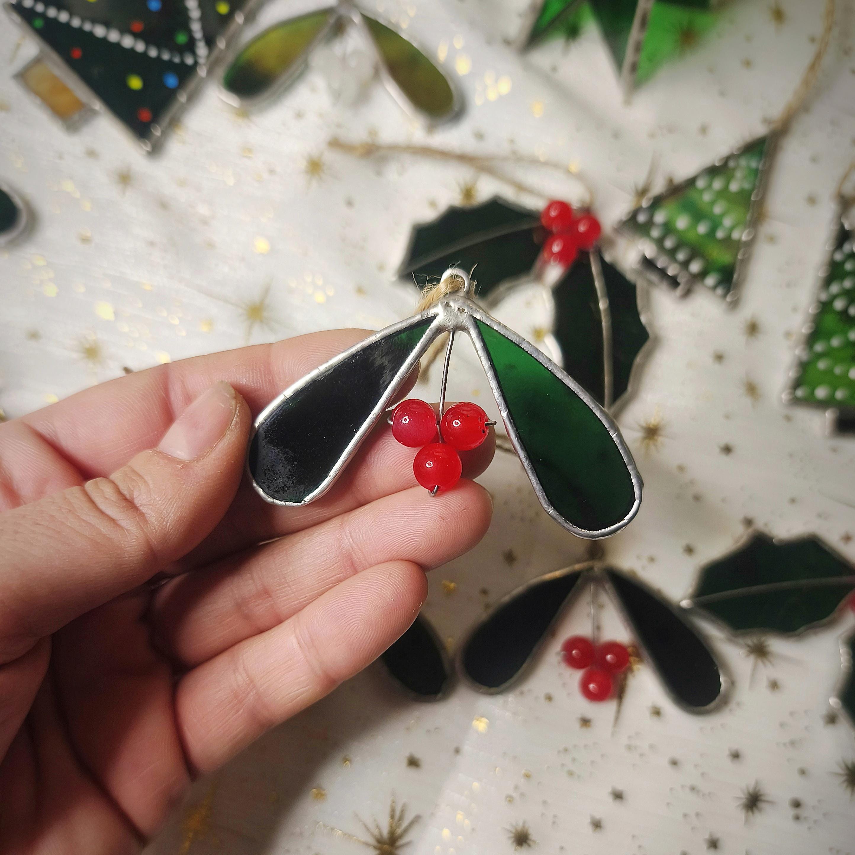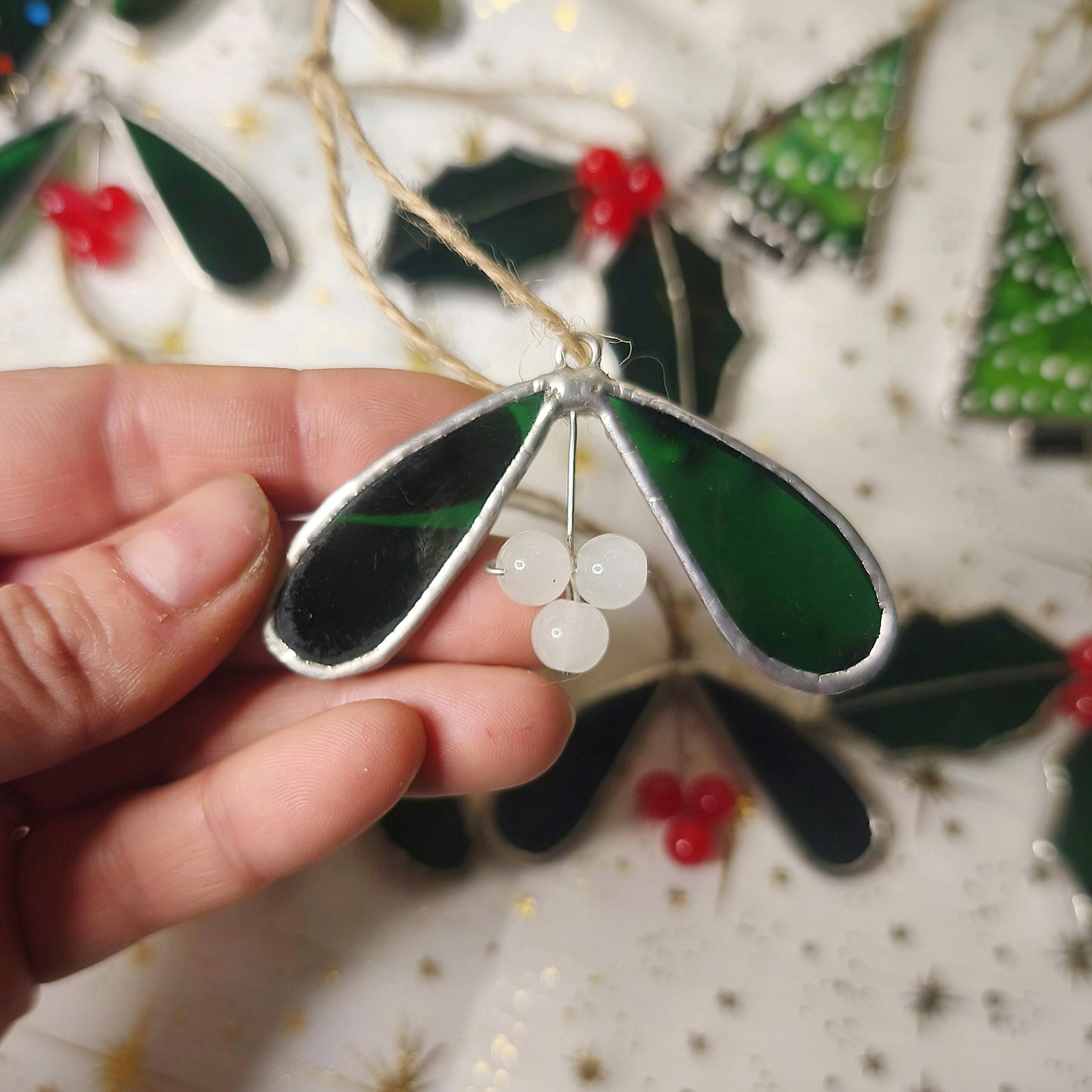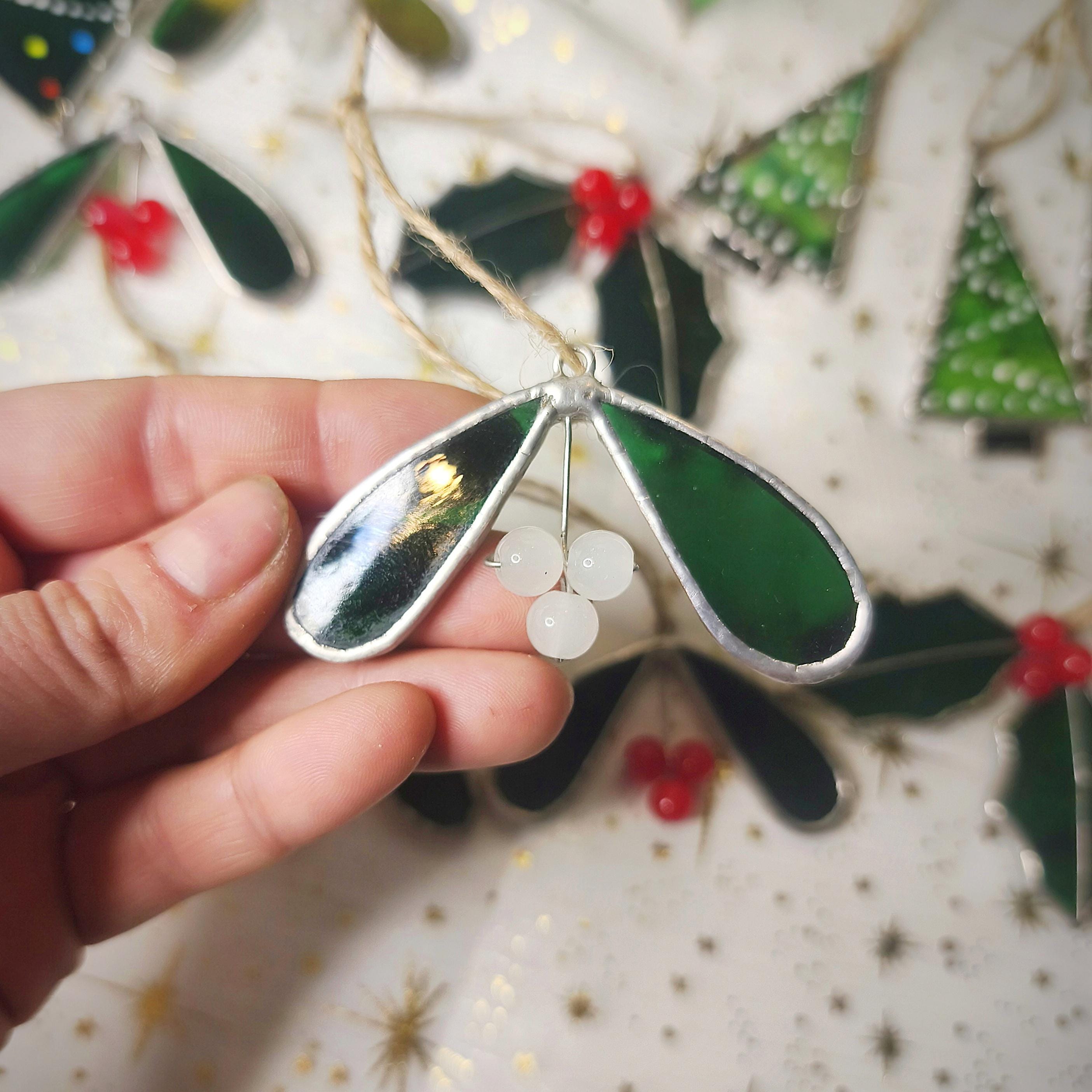 Stained Glass Mistletoe, perfect for Yule, Winter Solstice and Christmas decorations!